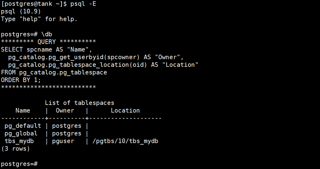 使用psql连接时加上“-E”的选项,在执行元命令后就可以获取对应的SQL代码。