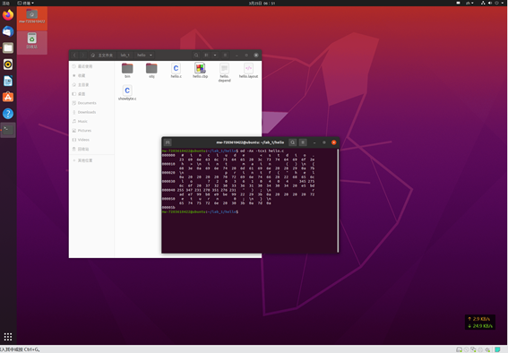 运行od -Ax -tcx1 hello.c 以及showbyte.c,结果截图。