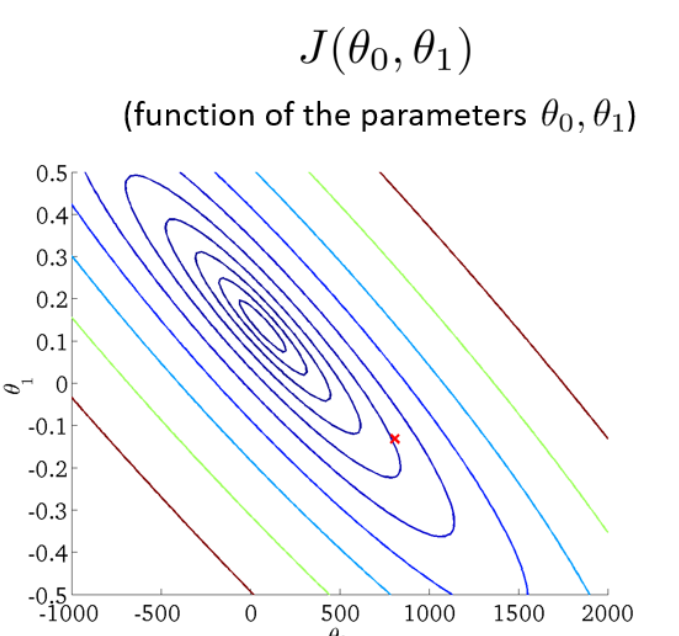 假设有两个特征:x1 是土地宽度,x2 是土地纵向深度,则有hθ(x) = θ0 + θ1x1 + θ2x2