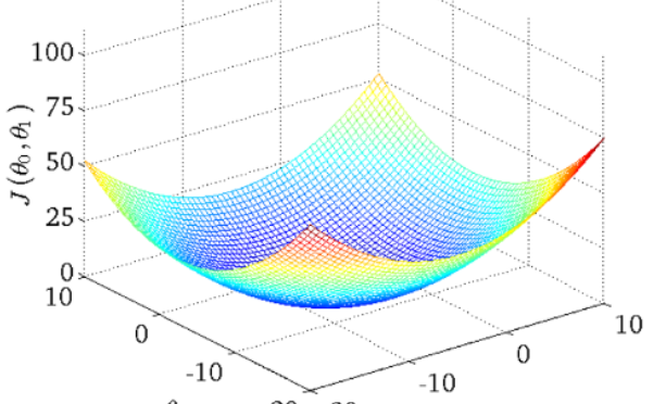 目标: 最小化代价函数,即minimize J(θ0, θ1)