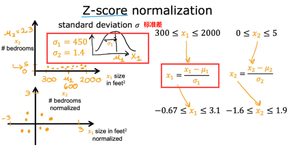 2.7 特征缩放 feature scaling (使具有不同特征值之间有相似的范围)