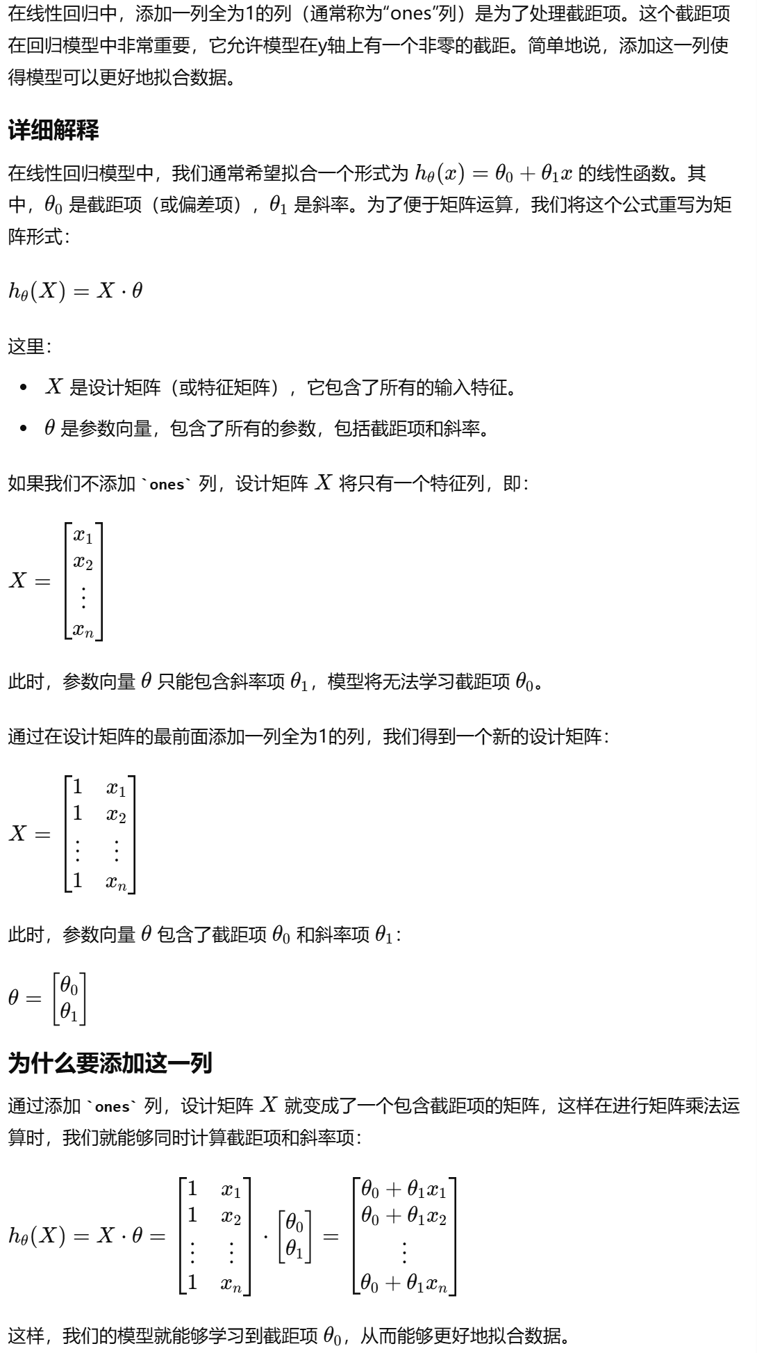 data.insert(0, 'ones', 1) # 在最前列插入‘ones’列,并且所有值都为1