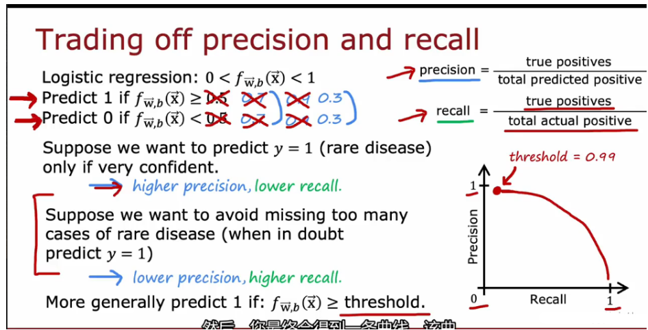 - 1. 手动选择一个阈值来权衡精度和召回率