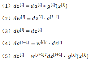 ② 反向传播(backward propagation):输入da^[l],输出是da^[l-1],dw^[l],db^[l]。