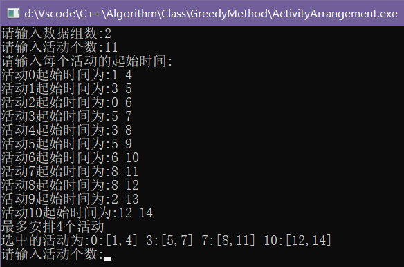cout<<"请输入每个活动的起始时间:"<<endl;