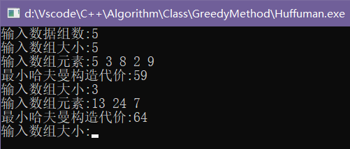 cout<<"最小哈夫曼构造代价:"<<Huffman2(a, n)<<endl;