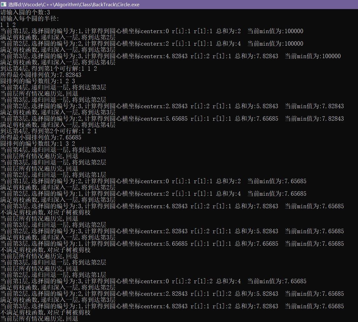 cout<<"当前第"<<i<<"层"<<",选择圆的编号为:"<<ID[i]<<",计算得到圆心横坐标centerx:"<<centerx<<" r[i]:"<<r[i]<<" r[1]:"<<r[1]<<" 总和为:"<<centerx+r[i]+r[1]<<" 当前min值为:"<<min<<endl;