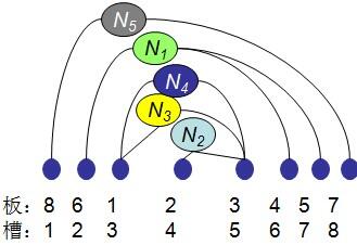 同样的,一个插槽最多被一条导线跨越一次,比如上图1中,对于5,6号插槽来说,N1只跨越5,6插槽一次!故最大我们能够得到的密度为m,也就是每根导线都跨越了某个相邻槽,比如图2.