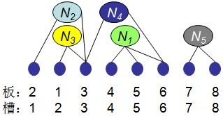将n块电路板以最佳排列方式插入带有n个插槽的机箱中。n块电路板的不同排列方式对应于不同的电路板插入方案。设B={1, 2, …, n}是n块电路板的集合,L={N1, N2, …, Nm}是连接这n块电路板中若干电路板的m个连接块。Ni是B的一个子集,且Ni中的电路板用同一条导线连接在一起。设x表示n块电路板的一个排列,即在机箱的第i个插槽中插入的电路板编号是x[i]。
