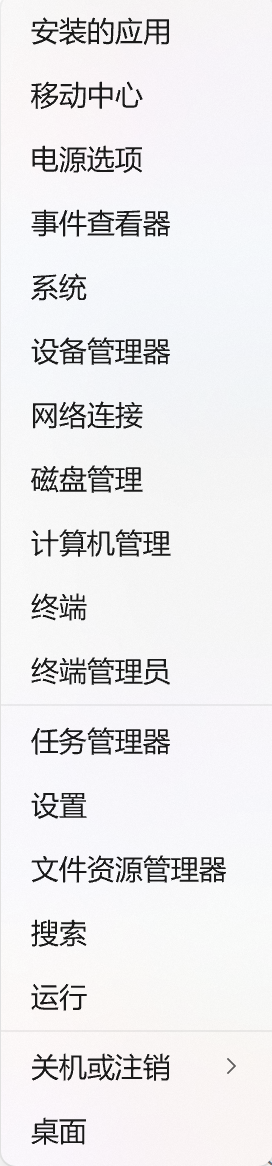 3、Win+X键可以打开这么多选项:
