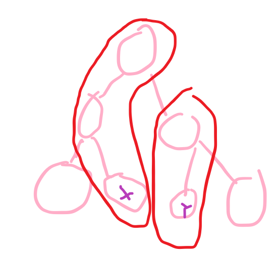 #include<bits/stdc++.h> #define int long long #define lid root<<1 #define rid root<<1|1 using namespace std; const int N=100005; inline int read(){ int f(1),x(0); char ch=getchar(); for(;!isdigit(ch);ch=getchar()) if(ch=='-') f=-1; for(;isdigit(ch);ch=getchar()) x=(x<<1)+(x<<3)+(ch^48); return f*x; } inline void write(int x){ if(x<0) putchar('-'),x=-x; if(x>9) write(x/10); putchar(x%10+'0'); } int n,m,head[N<<1],nxt[N<<1],to[N<<1],val[N],tot,num; int top[N],son[N],f[N],siz[N],in[N],rk[N]; inline void add(int x,int y){ to[++tot]=y,nxt[tot]=head[x],head[x]=tot; return ; } inline void dfs1(int now,int fa){ f[now]=fa; siz[now]=1; for(register int i=head[now];i;i=nxt[i]){ int y=to[i]; if(y==fa) continue; dfs1(y,now); siz[now]+=siz[y]; if(siz[son[now]]<siz[y]){ son[now]=y; } } } inline void dfs2(int now,int topp){ top[now]=topp; in[now]=++num; rk[num]=now; if(son[now]) { dfs2(son[now],topp); } for(register int i=head[now];i;i=nxt[i]){ int y=to[i]; if(y==f[now]||y==son[now]) continue; dfs2(y,y); } } ------------------------------------------------------------------ 树链抛分的dfs1和dfs2板子 把染的色的原来的树标明重儿子等,进行重链跑分 ------------------------------------------------------------------