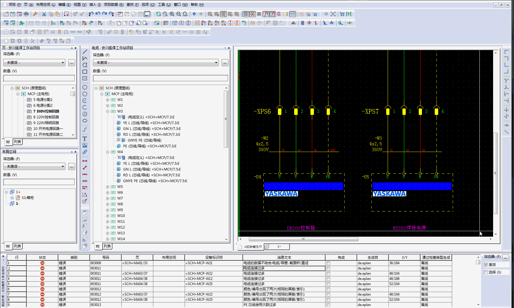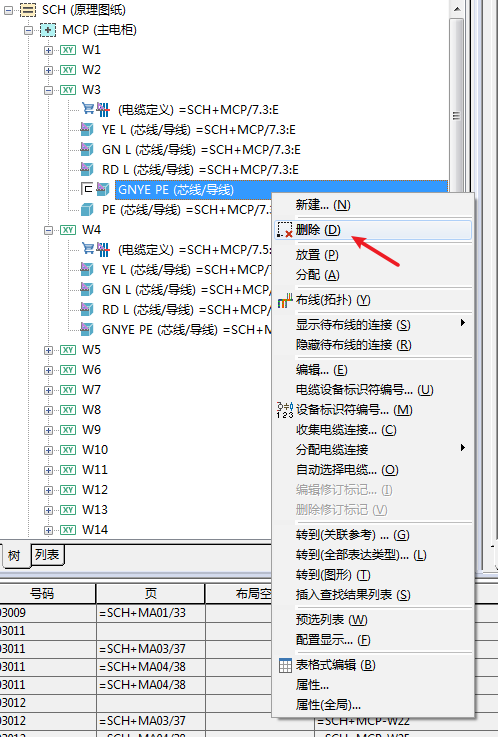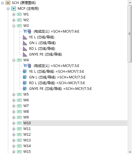 1.此处W3电缆的连接定义点编号“GNYE”未显示,下方对应的设备连接点不可以修改电位类型。导航器中相应未放置对象重叠的多线功能“GNYE”图标异常问题。