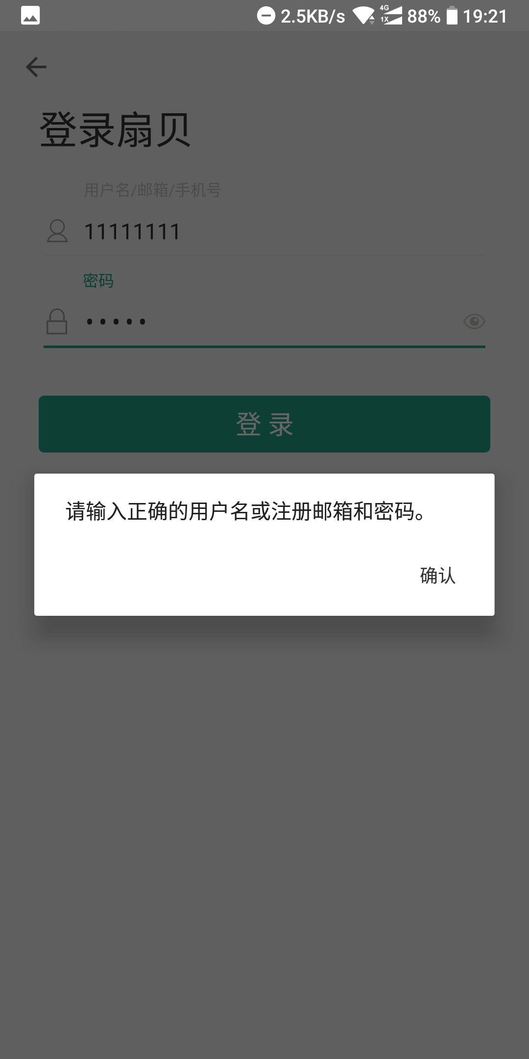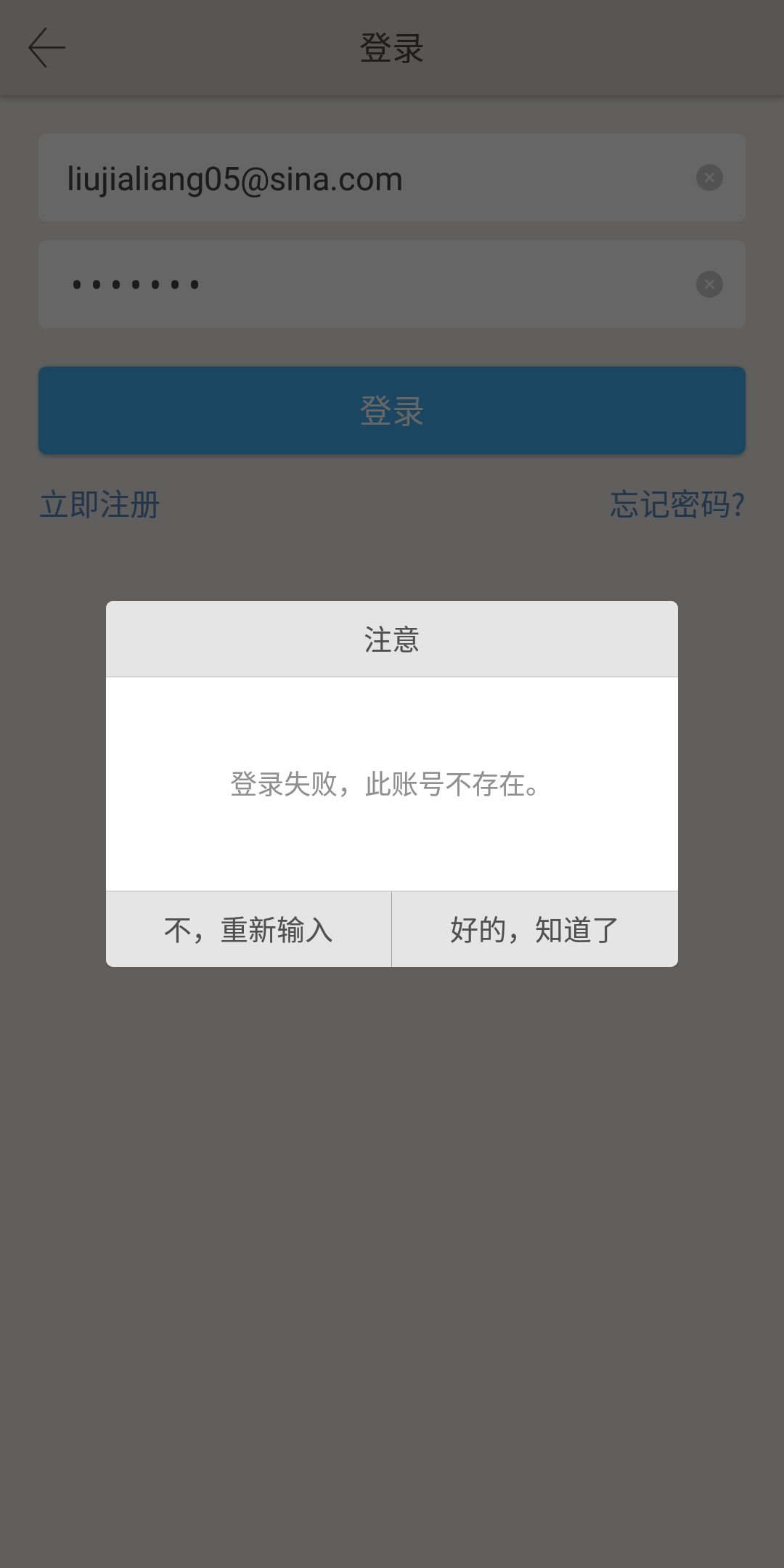 ii.输入错误的用户名和密码,提示重新输入: