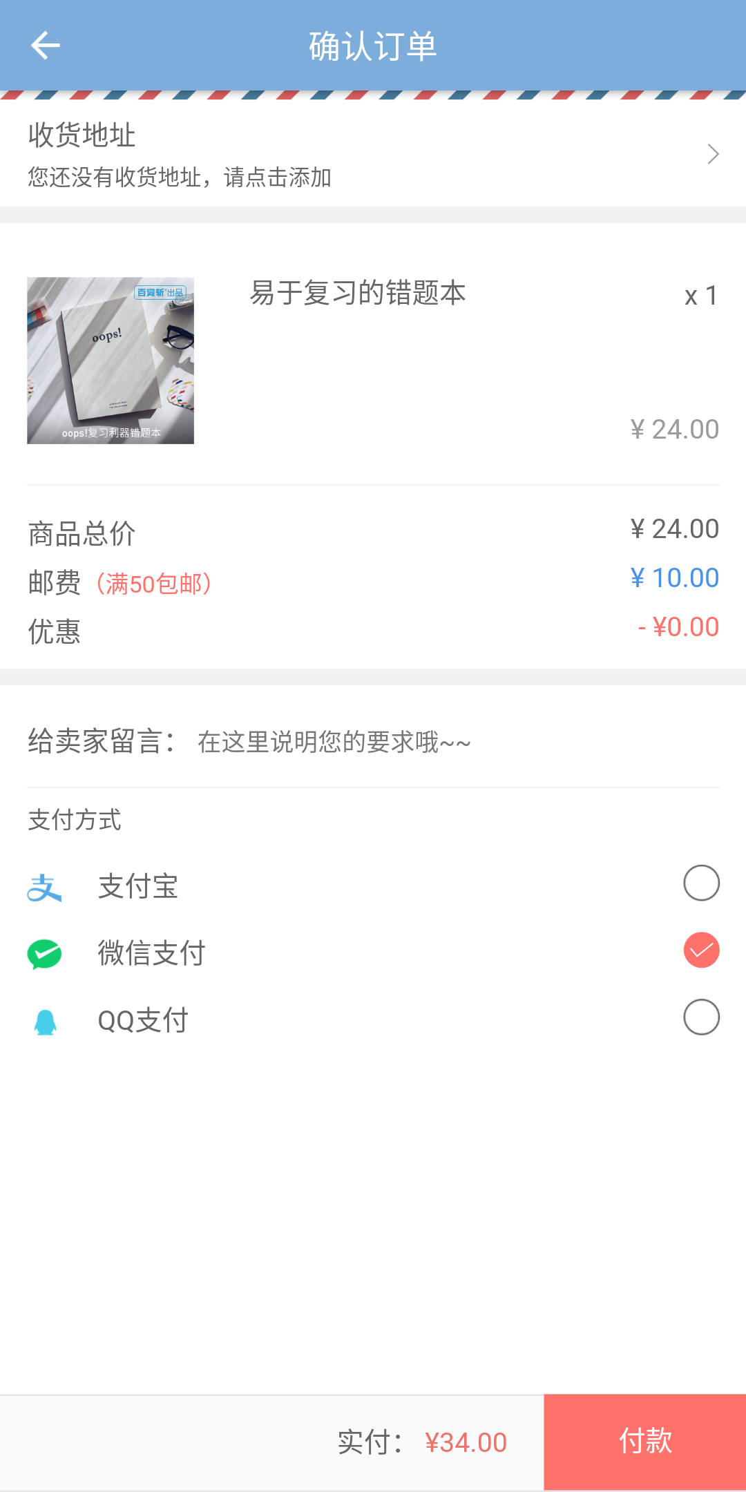 iii.选择付款方式: