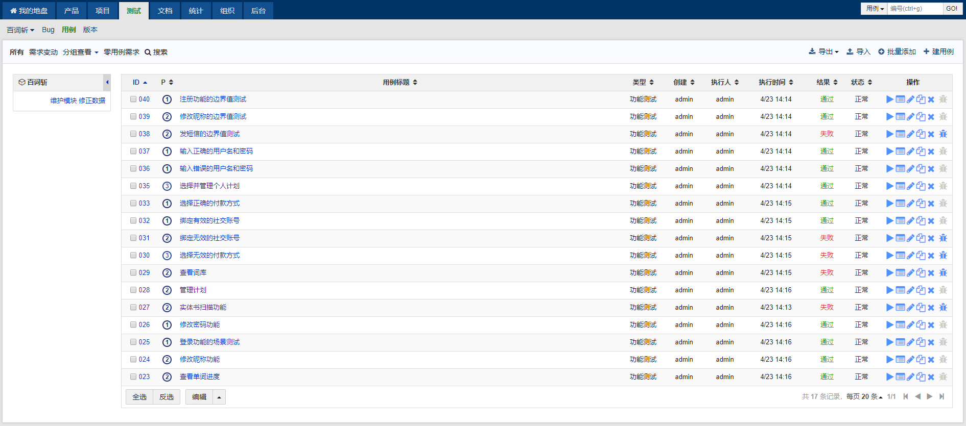场景测试[1]:即对场景事件流的测试。对于个人管理模块来说,主要在于注册和登录;