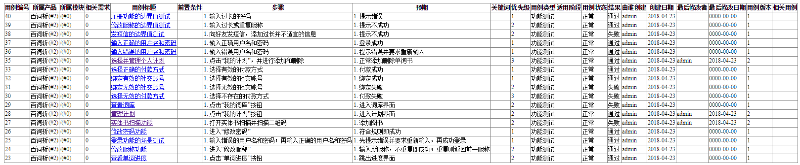 b.测试进度表: