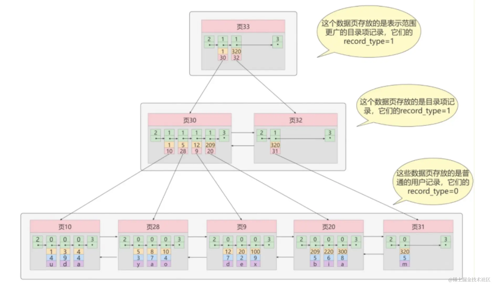 在MySQL的InnoDB引擎下,我们是通过B+树去存储索引结构的,在B+树中真正存储数据的都是叶子节点