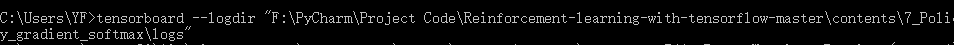 tensorboard --logdir "F:\PyCharm\Project Code\Reinforcement-learning-with-tensorflow-master\contents\7_Policy_gradient_softmax\logs"
