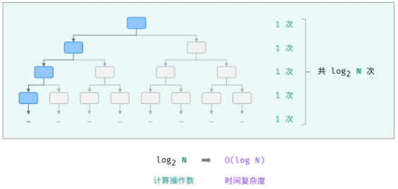 对数阶与指数阶相反,指数阶为 “每轮分裂出两倍的情况” ,而对数阶是 “每轮排除一半的情况” 。对数阶常出现于「二分法」、「分治」等算法中,体现着 “一分为二” 或 “一分为多” 的算法思想。