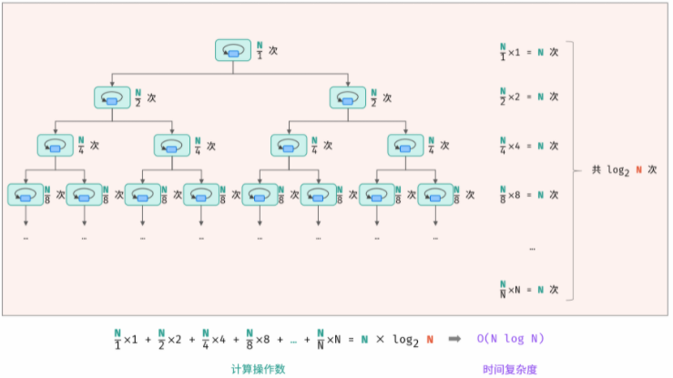 说明:此图为每个节点执行N次,然后外部执行logN次(因为一分为二)。