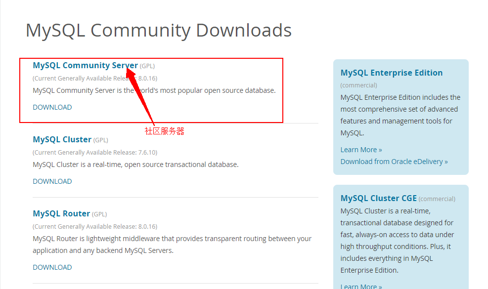 常规使用 社区版即可:MySQL Community Edition。(还有企业版)