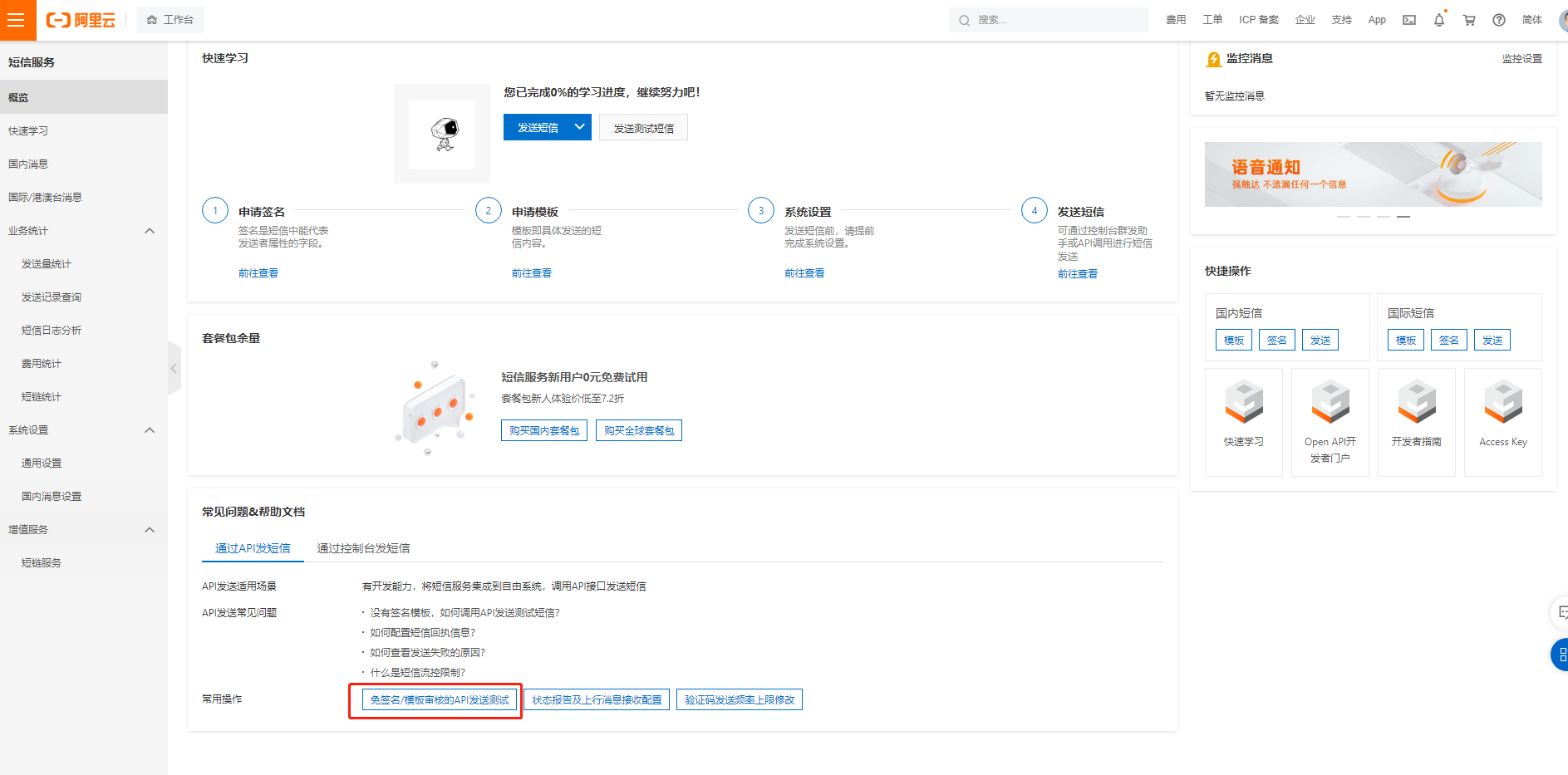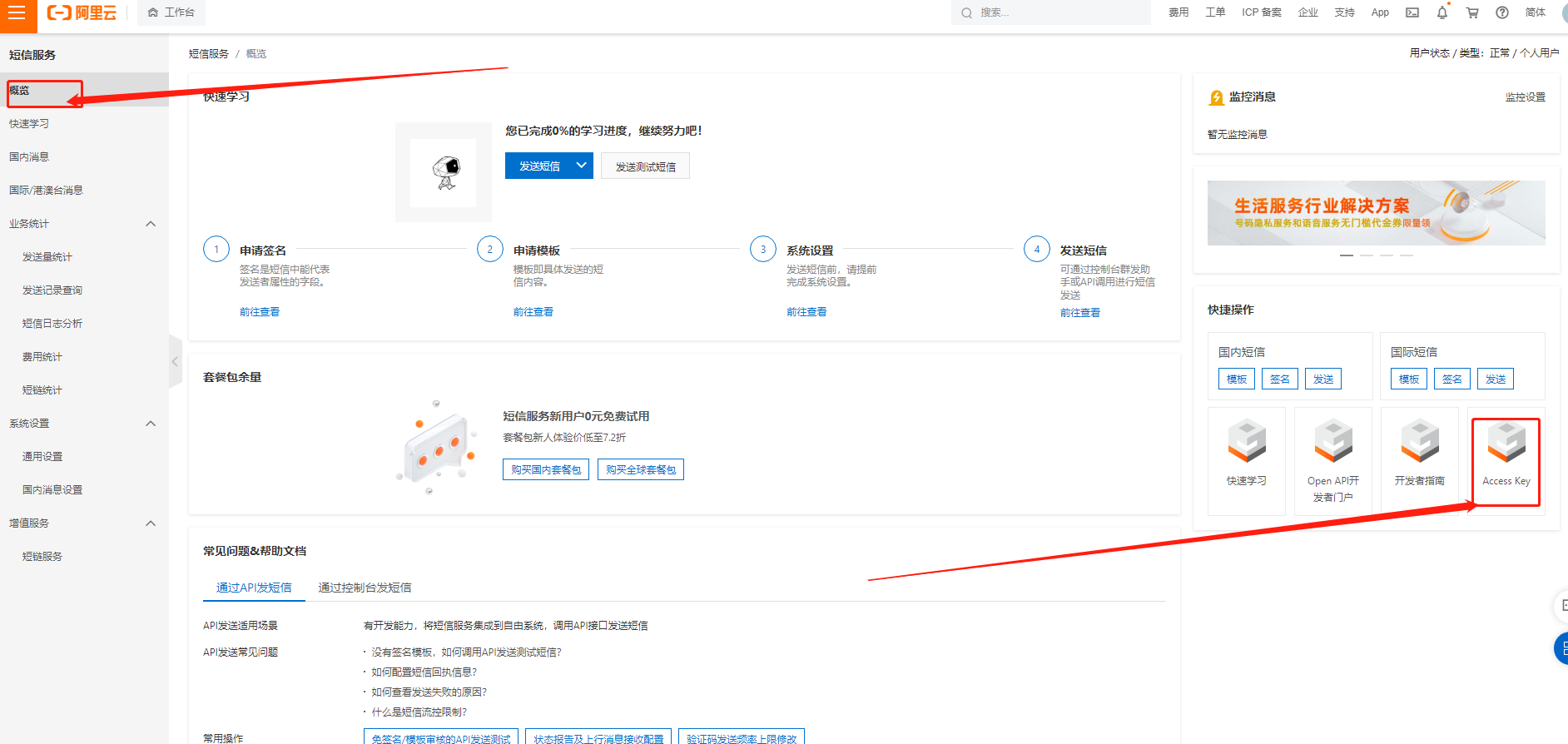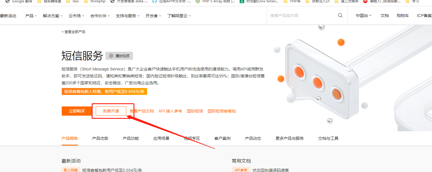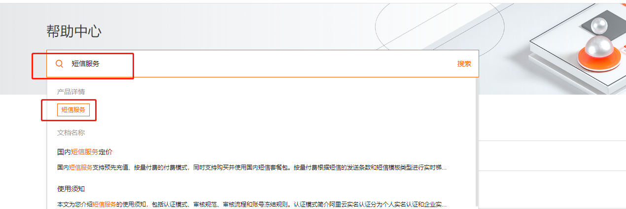 在产品中搜索 短信服务