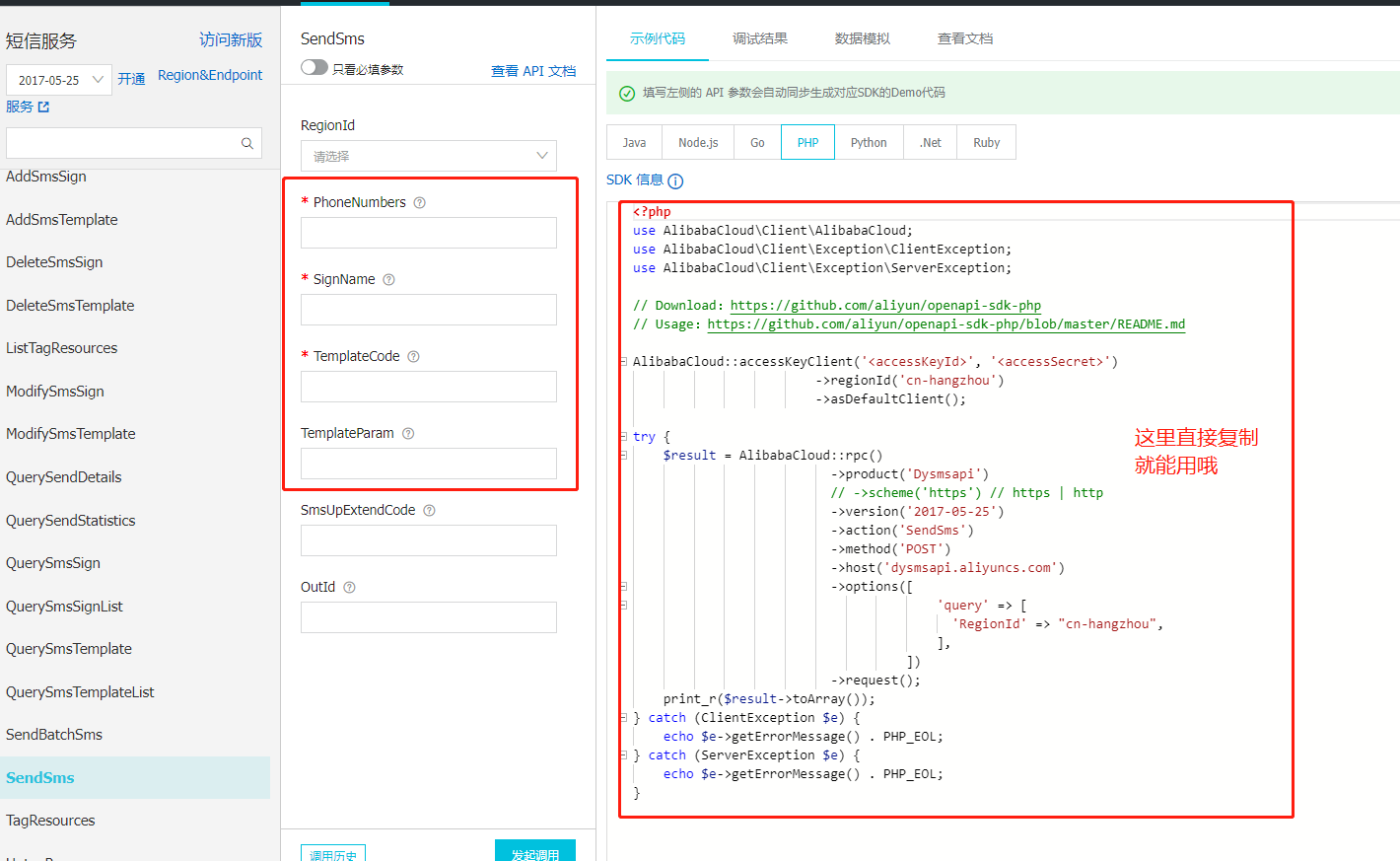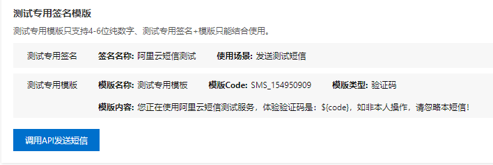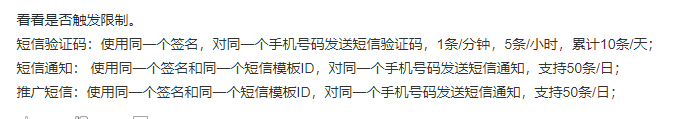 注意 发送短信 会触发 分钟级限流