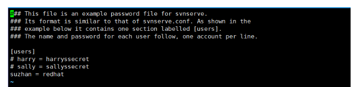 在[users]块中添加用户和密码,格式:帐号=密码,如suzhan=redhat