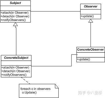 - 抽象主题(Subject)角色:主题角色将所有对观察者对象的引用保存在一个集合中,每个主题可以有任意多个观察者。 抽象主题提供了增加和删除观察者对象的接口。