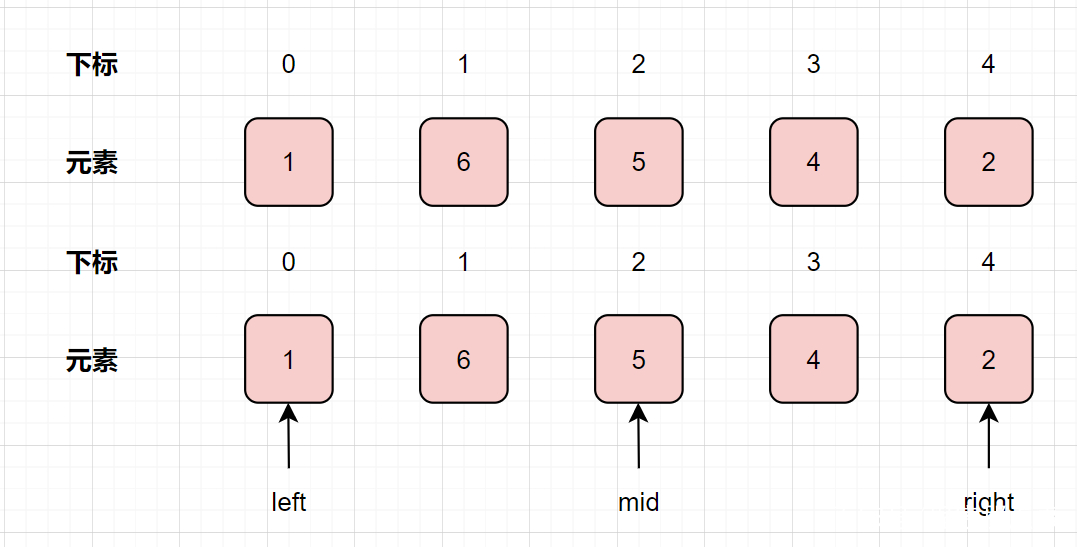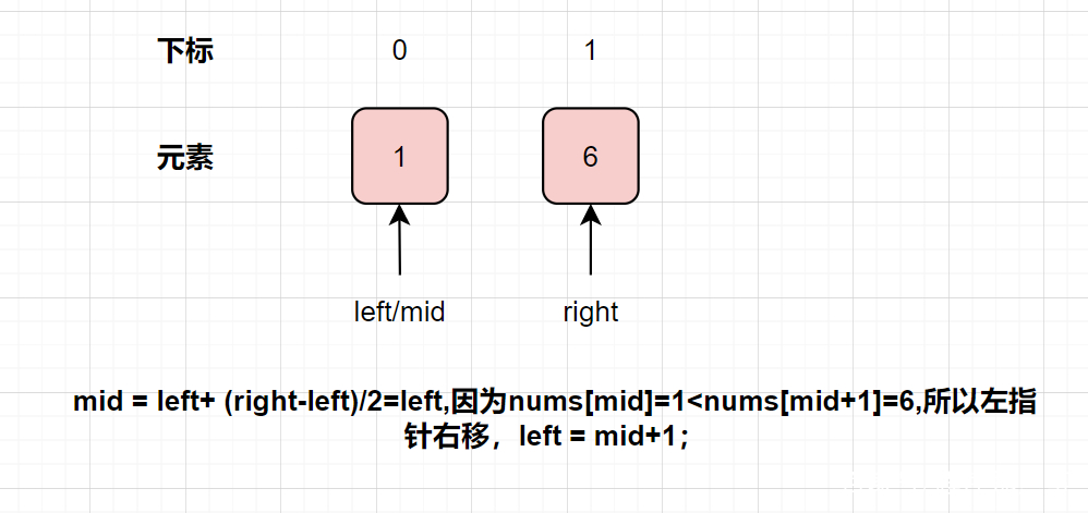 - 如果中间元素小于其下一个元素大小,证明最大值在左侧,因此右指针左移