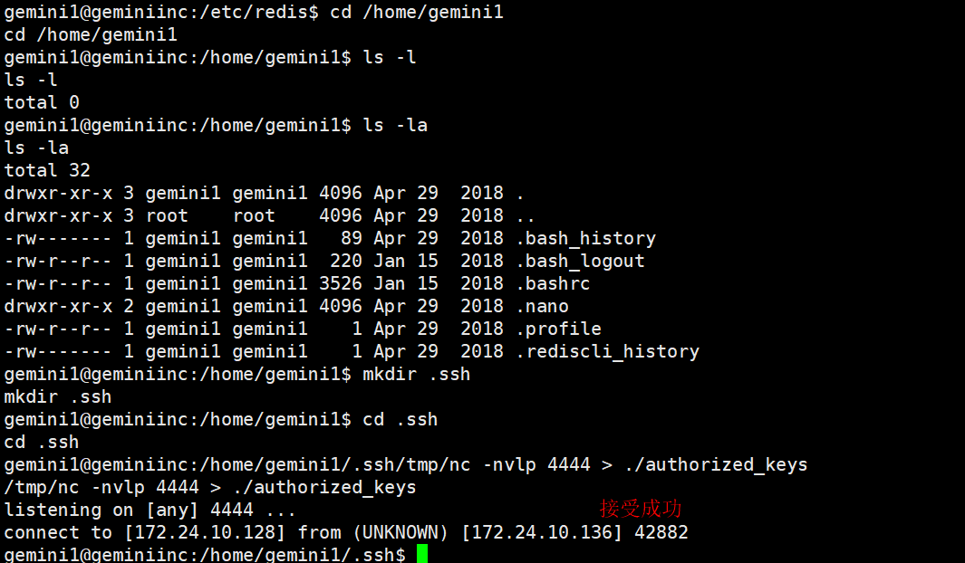 127.0.0.1:6379> set dir /root/.ssh #指定数据库文件的保存路径为/root/.ssh