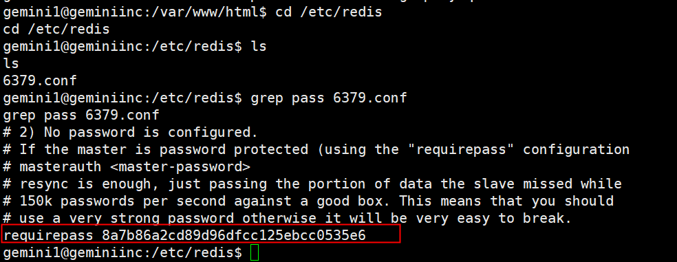 ③在redis默认的目录中进行信息搜集,发现了redis的配置文件,并从配置文件中发现了redis设置的密码