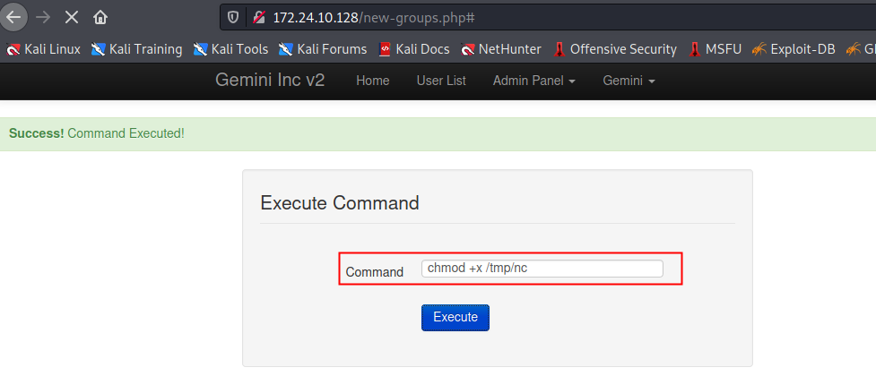 10)通过管理员账号Gemini和密码secretpassword登录后台:登陆后发现了两个功能选项,但是点击时却无法正常访问