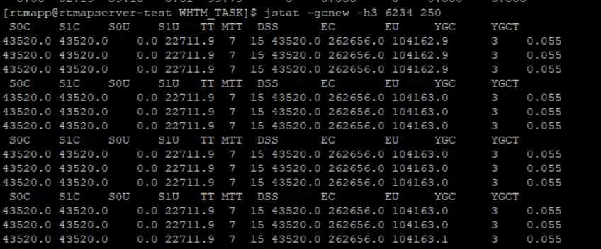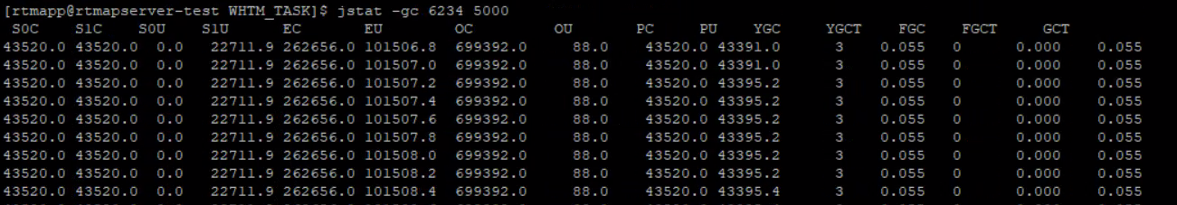 即会每5秒一次显示进程号为6234的java进成的GC情况
