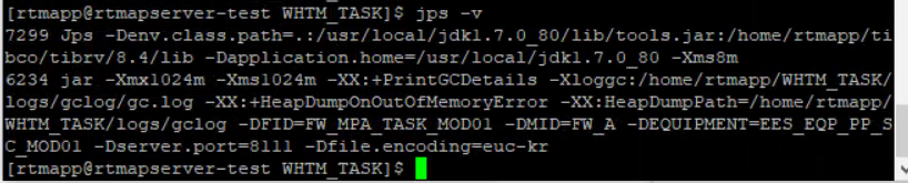 例:jps -v 查看进程号及进程的JVM参数设置情况;如下表示进程号为6234,初始内存和最大内存都设为1G。