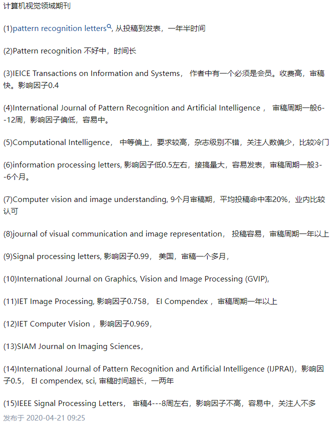 人工智能、计算机视觉国际会议和期刊信息