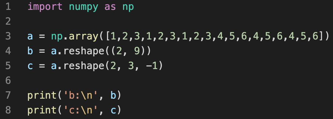 把一维数组reshape成多维数组,是由外向内逐步切割的过程: