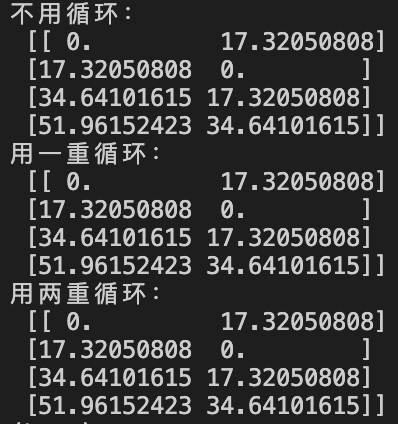 dist[i, :] = np.sqrt(np.sum((cloud1[i, :] - cloud2)**2, axis=1))
