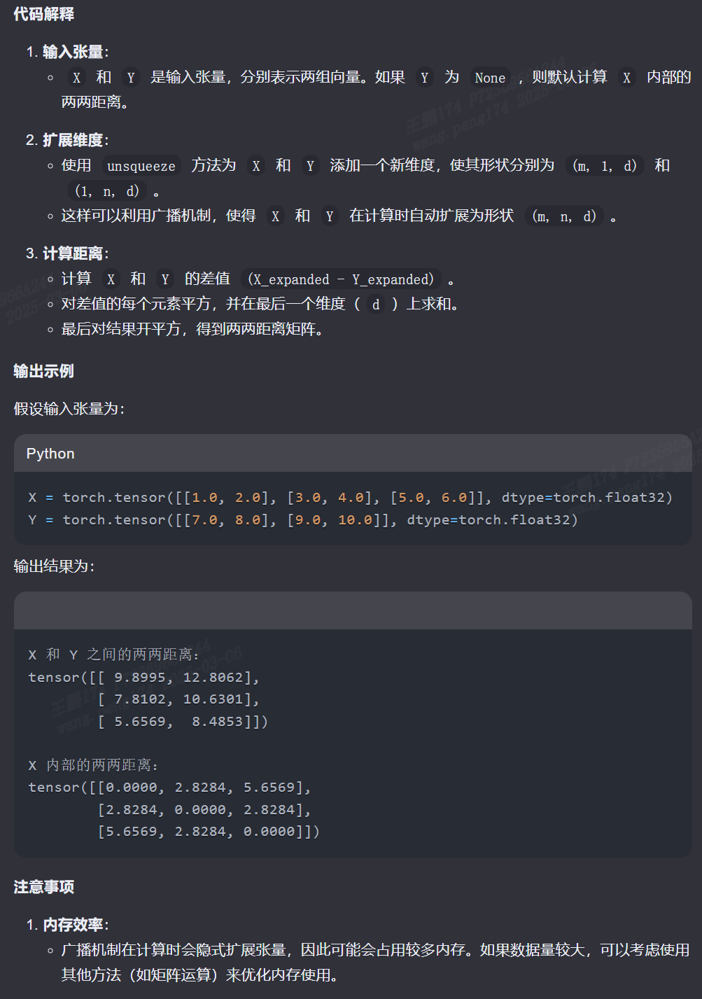 distance_matrix = torch.sqrt(torch.sum((X_expanded - Y_expanded) ** 2, dim=2)) # 形状为 (m, n)