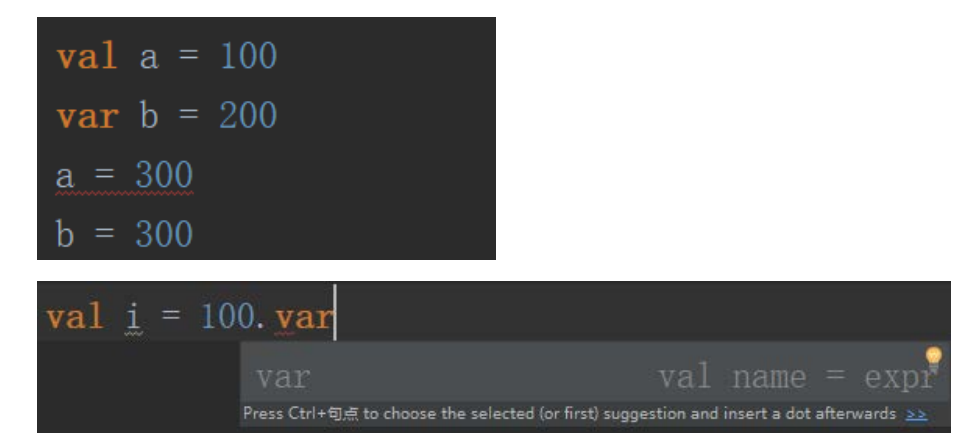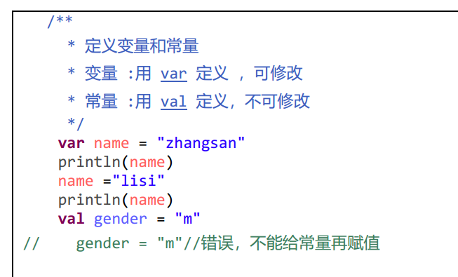 3. Scala中定义变量使用var,定义常量使用val ,变量可变,常量不可变.变量和常量