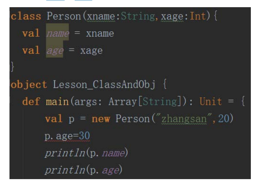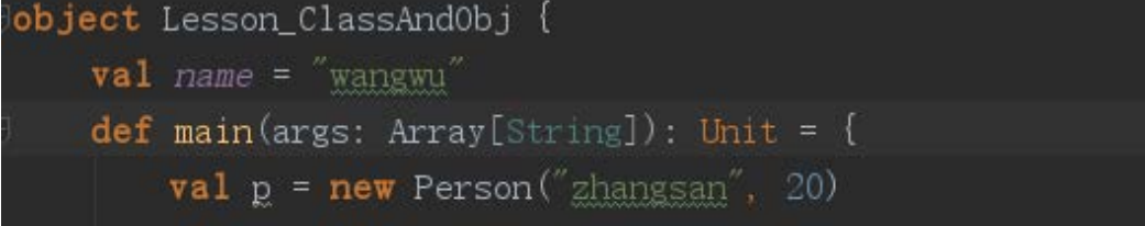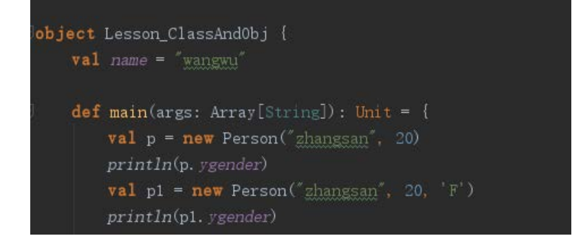 5. Scala类中可以传参,传参一定要指定类型,有了参数就有了默认了构造。类中的
