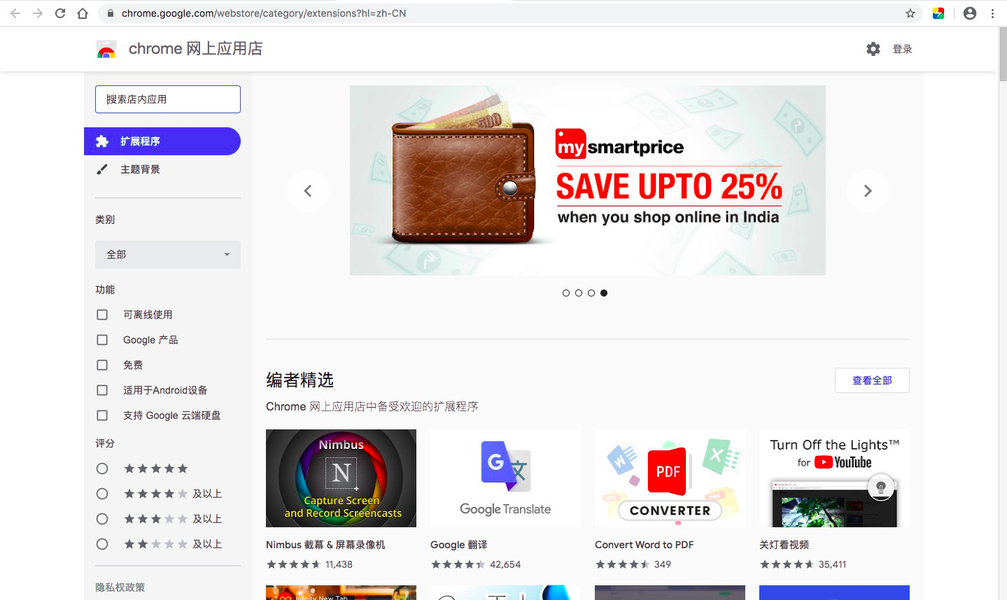 访问谷歌拓展商店:https://chrome.google.com/webstore/category/extensions?hl=zh-CN
