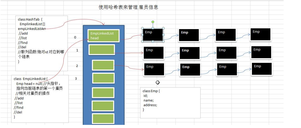 3) 使用链表来实现哈希表, 该链表不带表头[即: 链表的第一个结点就存放雇员信息]