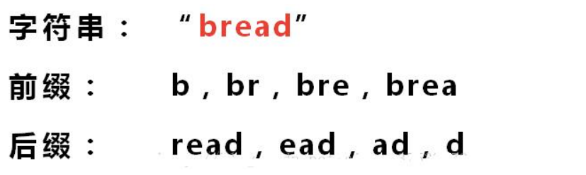 -”ABCDABD”的前缀为[A,AB, ABC, ABCD, ABCDA, ABCDAB],后缀为[BCDABD, CDABD, DABD, ABD, BD,