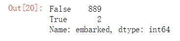 titanic['embarked'].isnull().value_counts() #查看embarked缺失