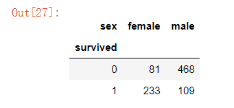 titanic.groupby('survived')['sex'].value_counts().unstack() #统计获救男女人数