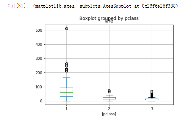 6.画出乘客票价与舱位等级的箱体图Boxplot,从图中能够得到哪些结论?