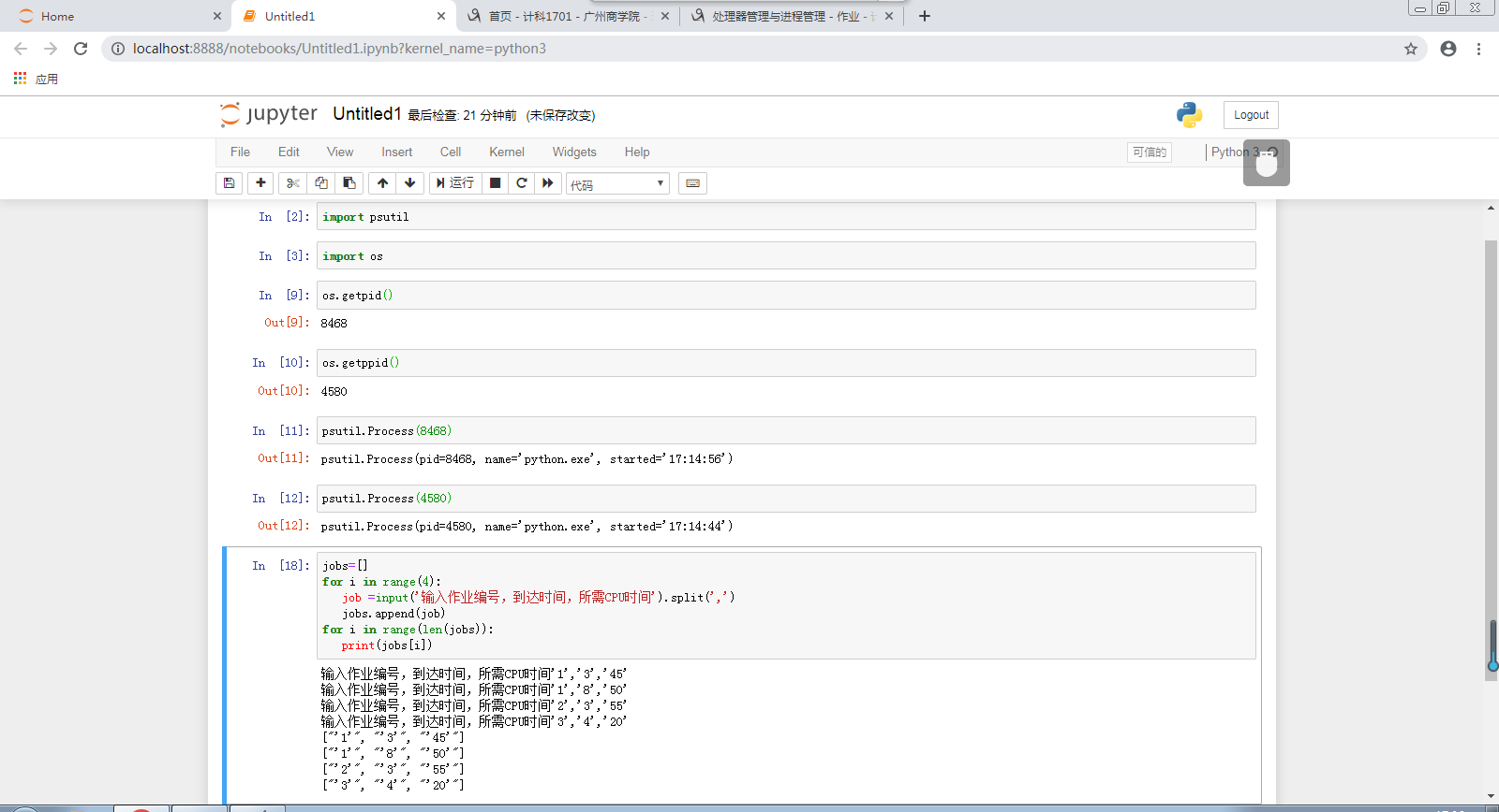 代码:import psutil