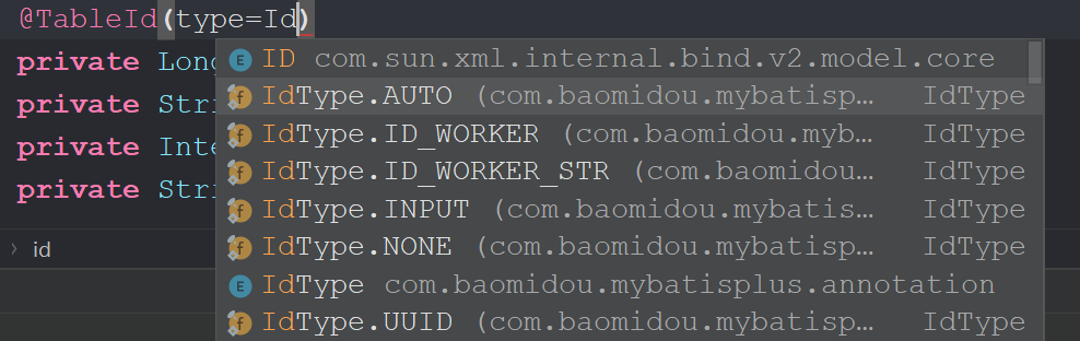 mp自带策略,生成19位的值,数字类型使用这种策略,比如long id;
