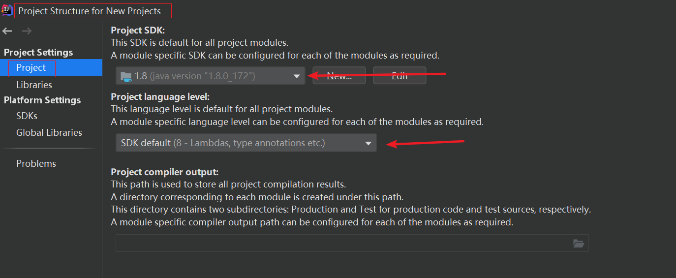 2) 为新工程配置jdk版本(New Projects)